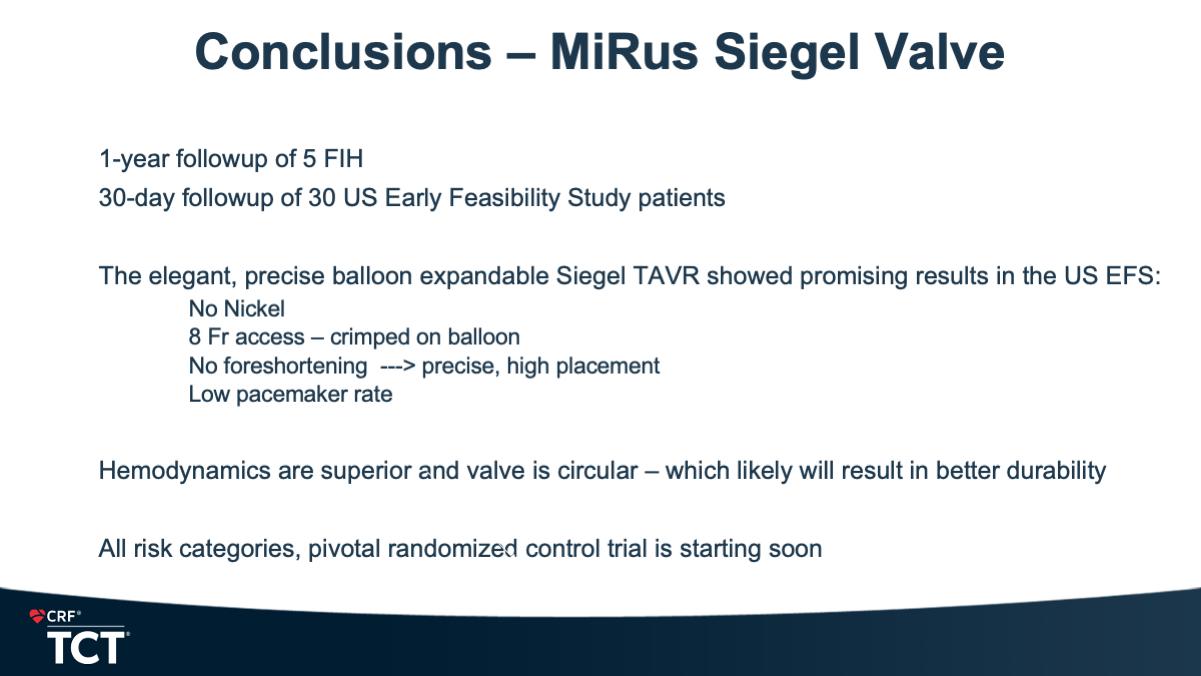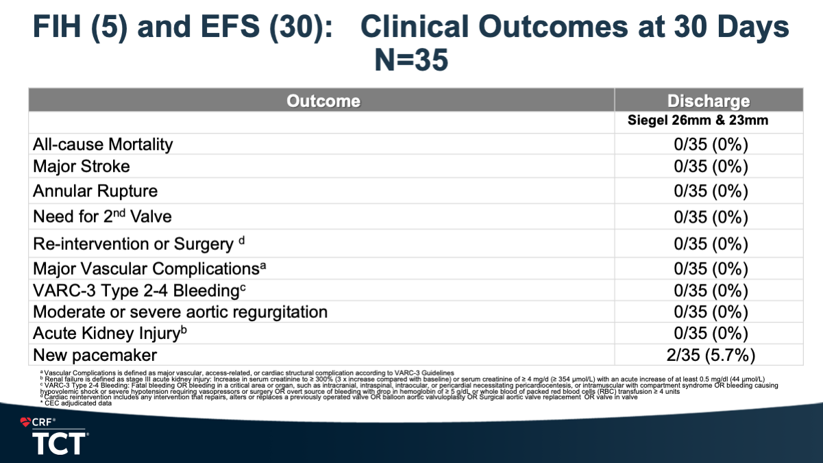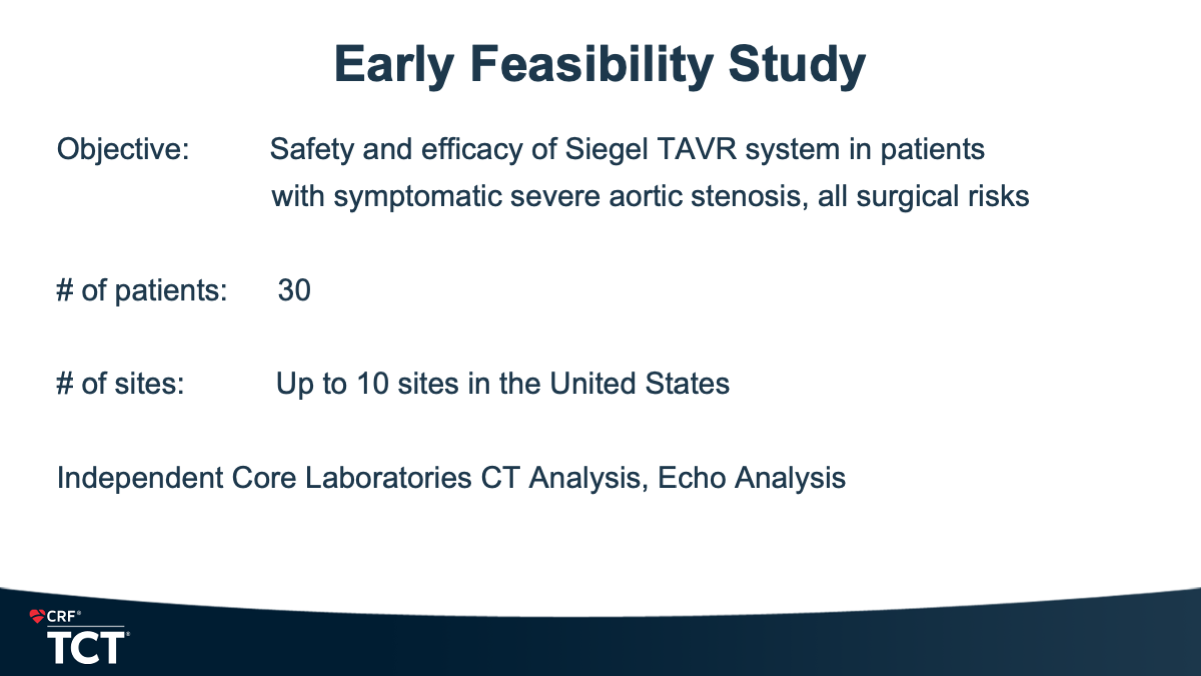 Siegel TAVR: FIH 1-year & Early Feasibility 30-day results